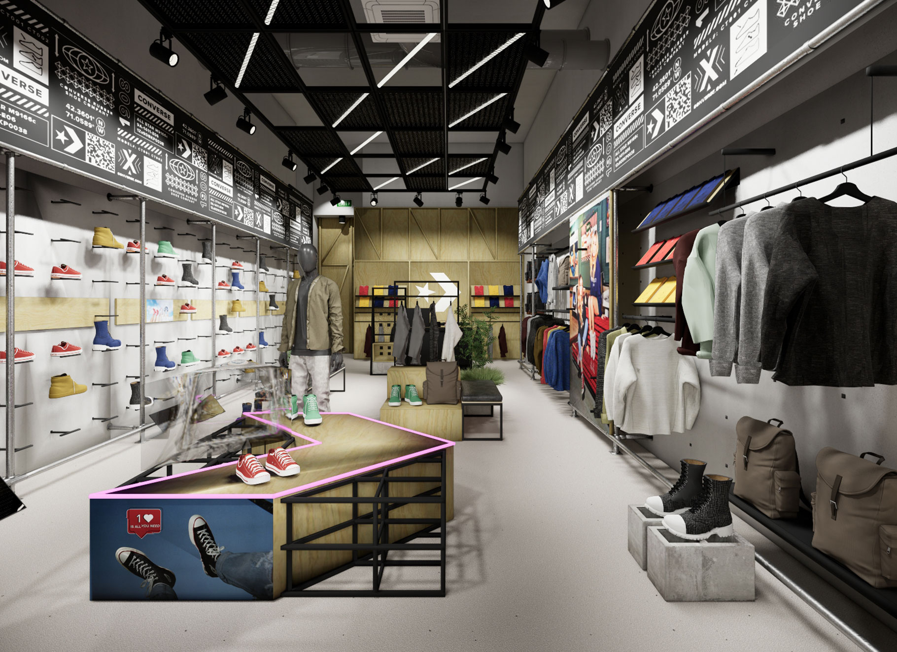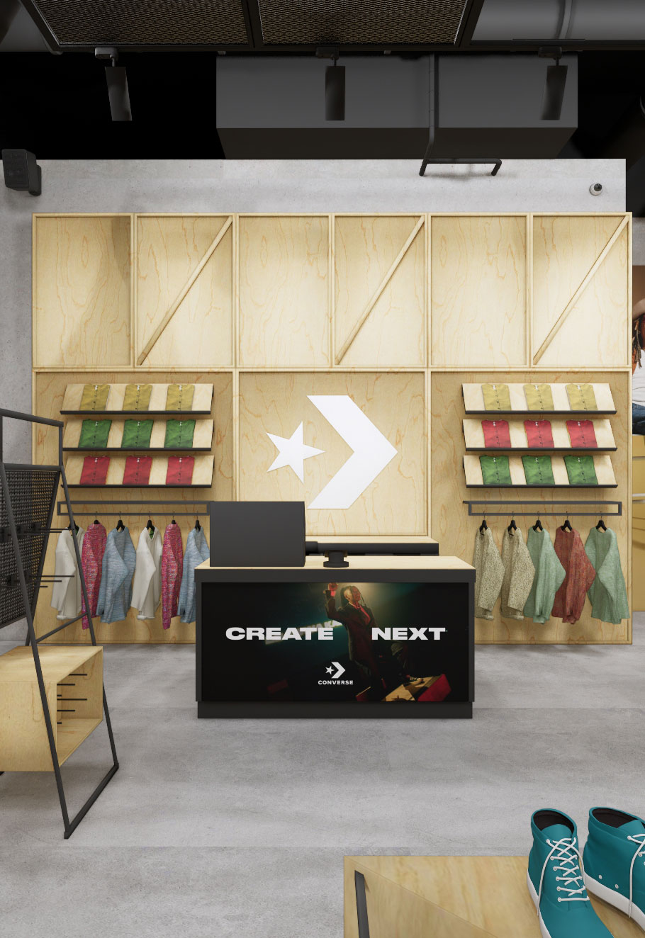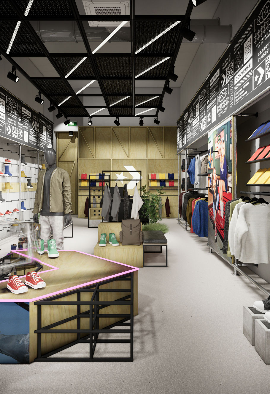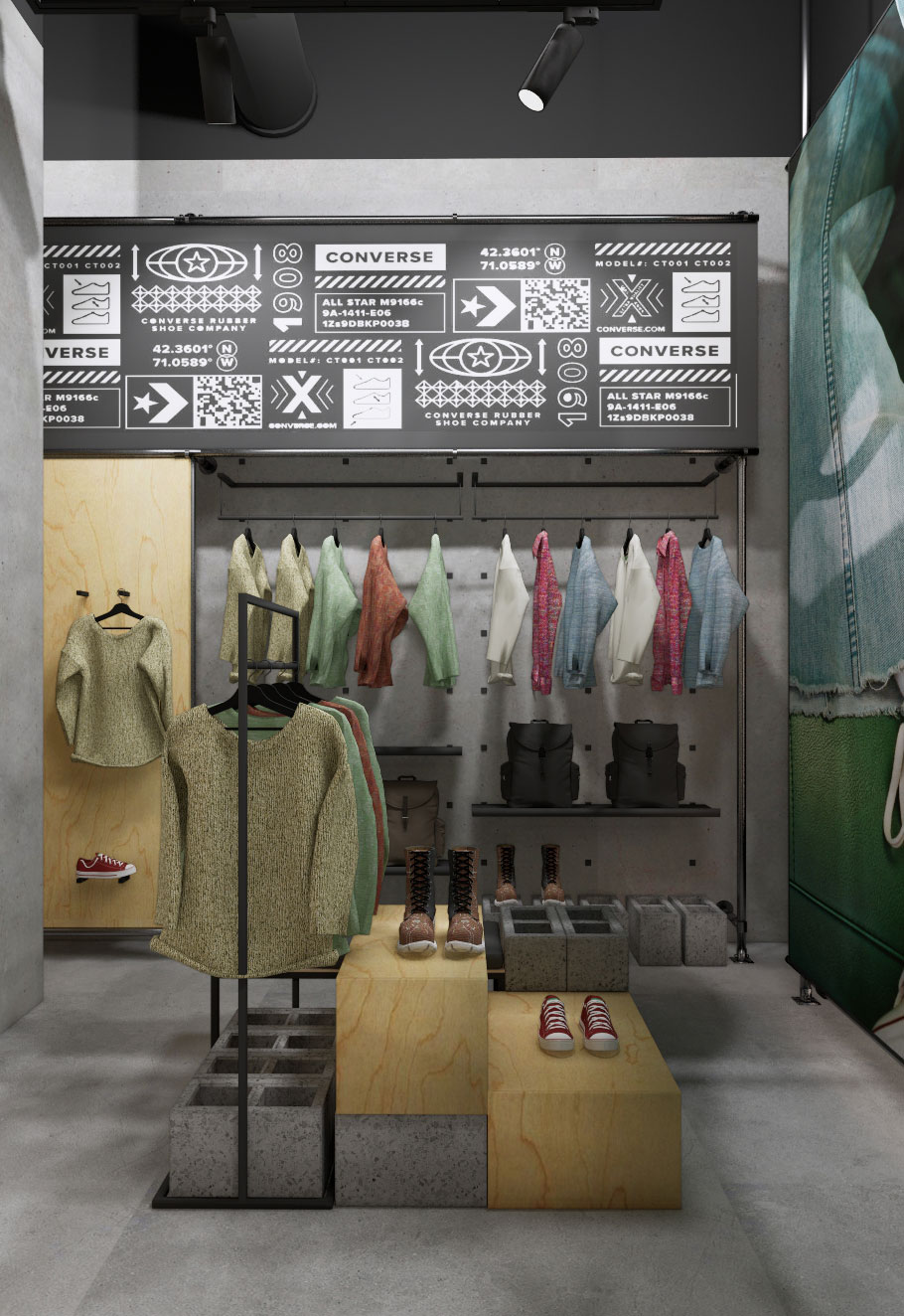 - Projekt koncepcyjny – zgodny z wytycznymi centrum handlowego oraz brand guidelines marki Converse