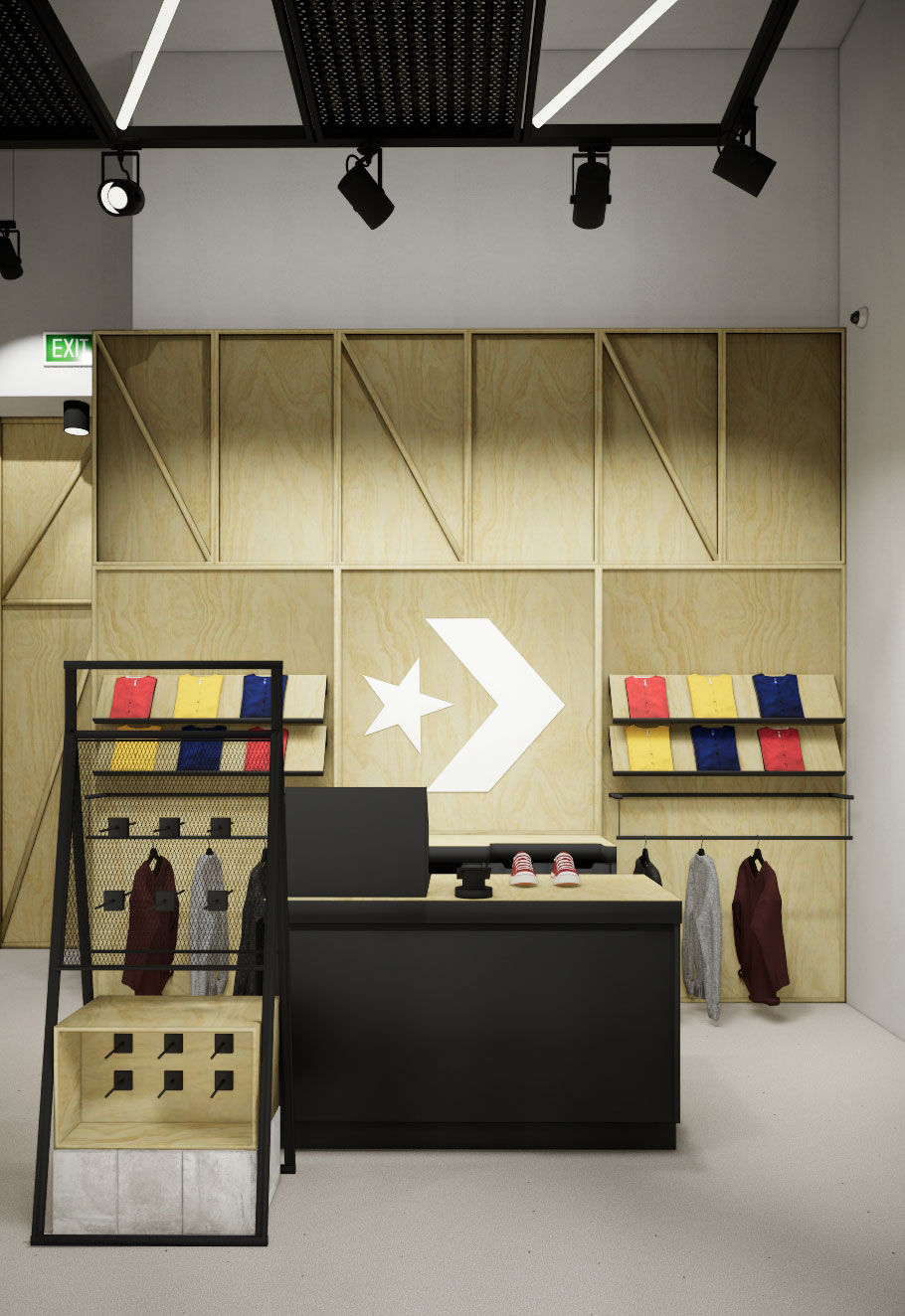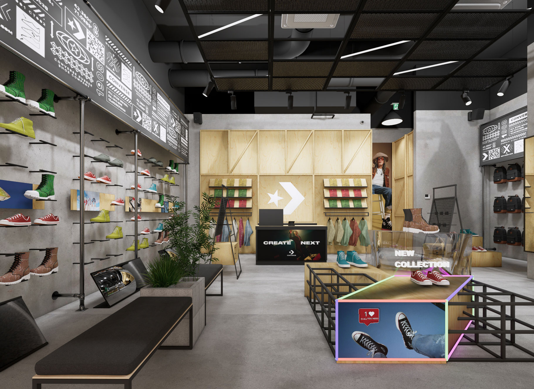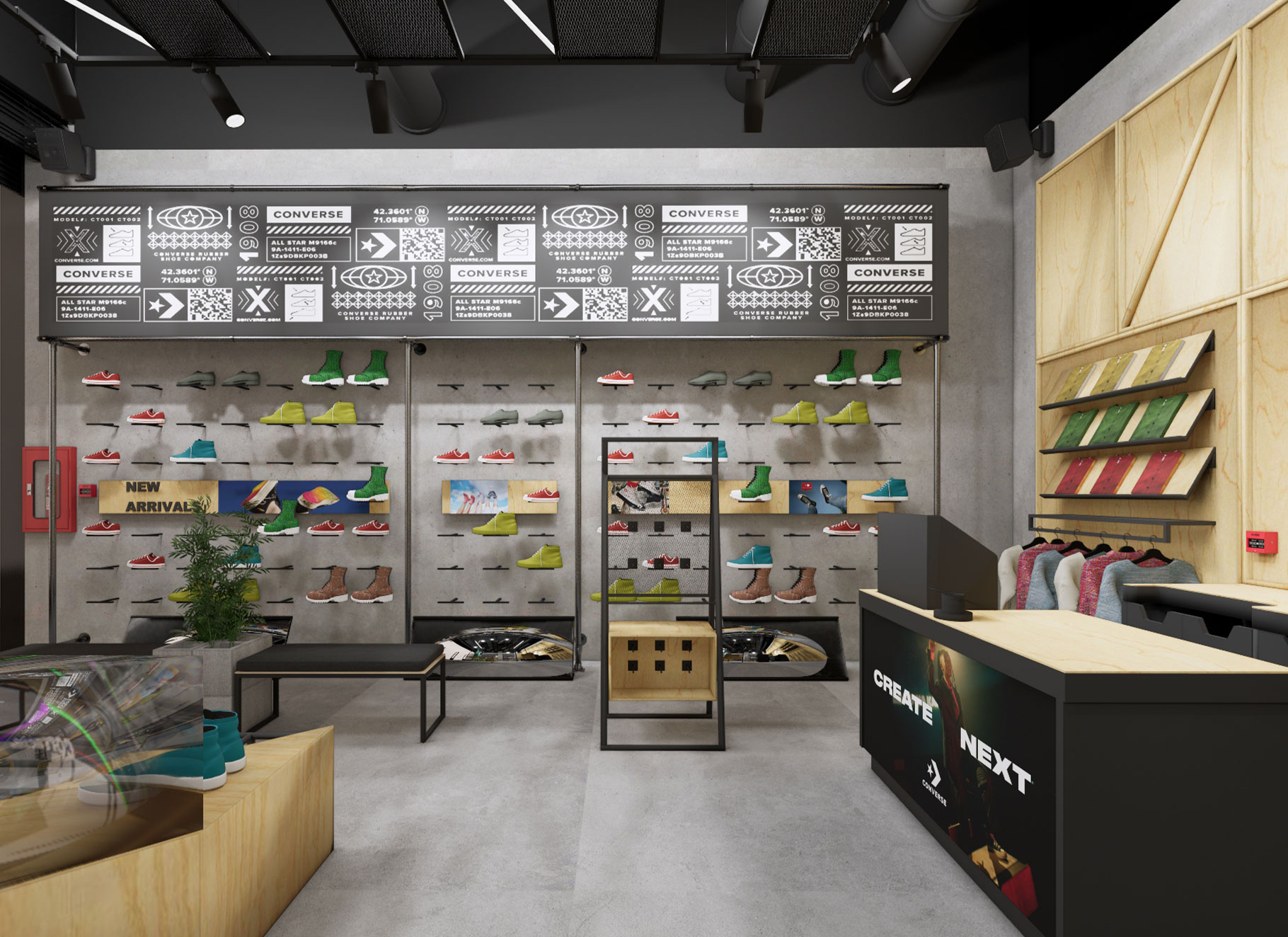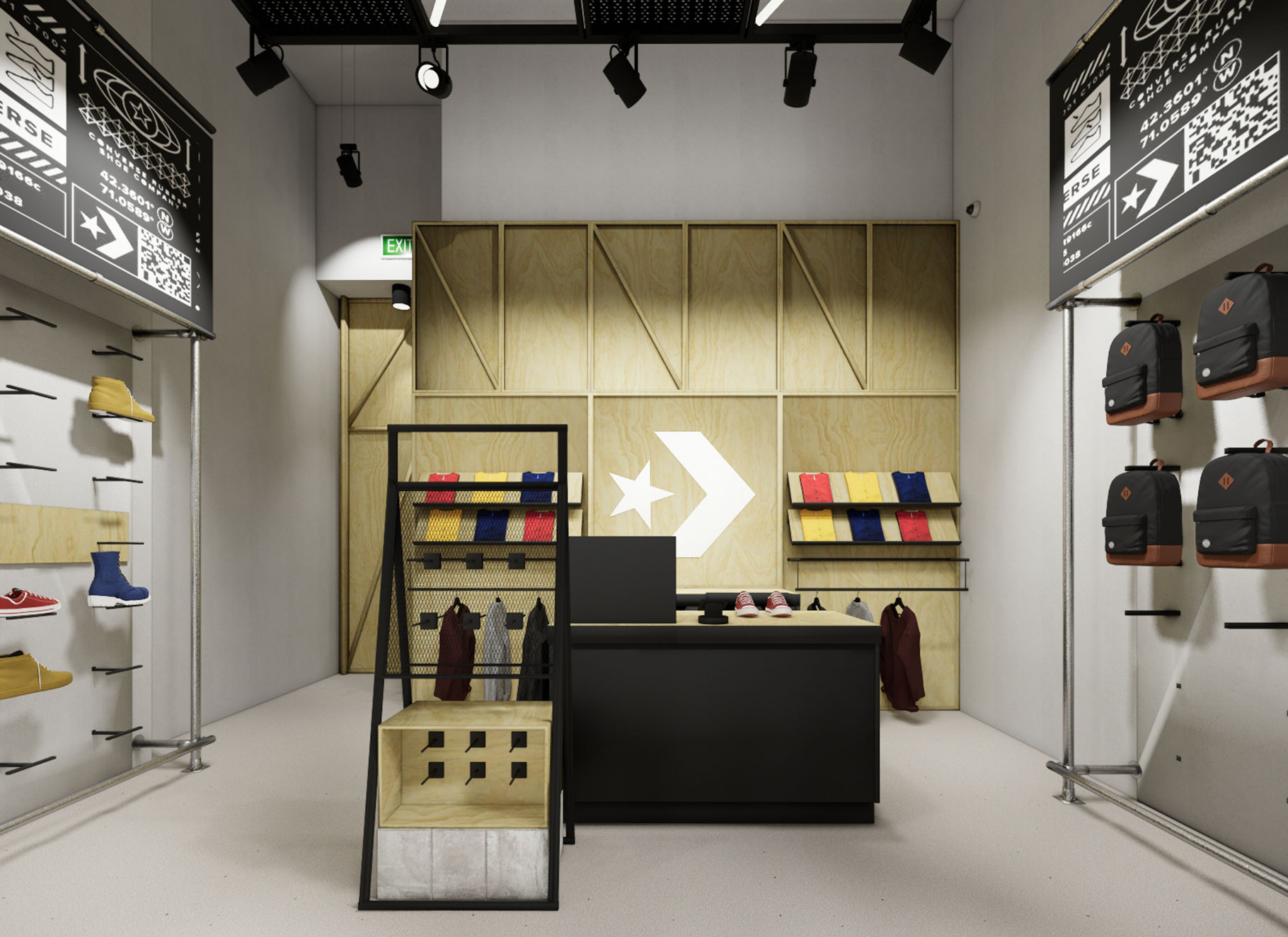 - Projekt koncepcyjny – zgodny z wytycznymi centrum handlowego oraz brand guidelines marki Converse